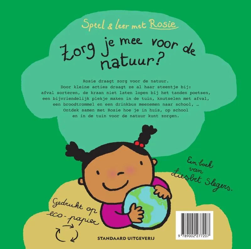 Door kleine acties draagt ze al haar steentje bij: afval sorteren, de kraan niet laten lopen bij het tanden poetsen, een bijvriendelijk plekje maken in de tuin, knutselen met afval, een broodtrommel en een drinkbus meenemen naar school, … Ontdek samen met Rosie hoe je in huis, op school en in de tuin voor de natuur kunt zorgen.