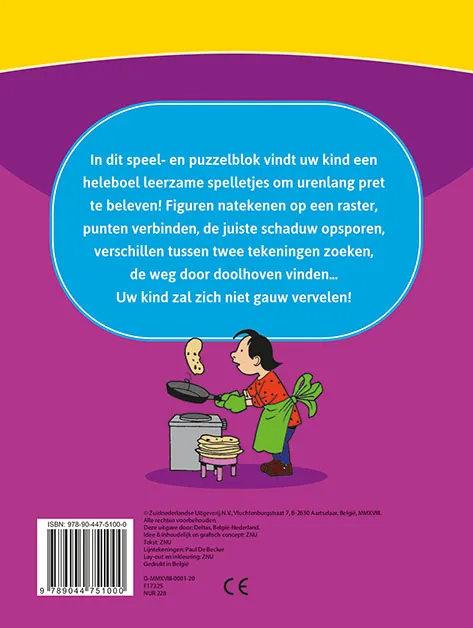 In dit speel- en puzzelblok vindt je kind een heleboel leerzame spelletjes om urenlang pret te beleven! Figuren natekenen op een raster, punten verbinden, de juiste schaduw opsporen, verschillen tussen twee tekeningen zoeken, de weg door doolhoven vinden… Je kind zal zich niet gauw vervelen!