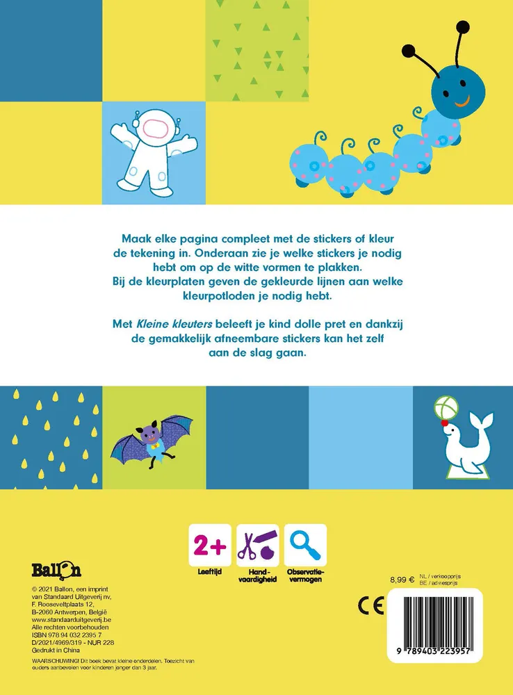 Met Kleine kleuters beleeft je kind dolle pret en dankzij de gemakkelijk afneembare stickers kan het zelf aan de slag gaan.
