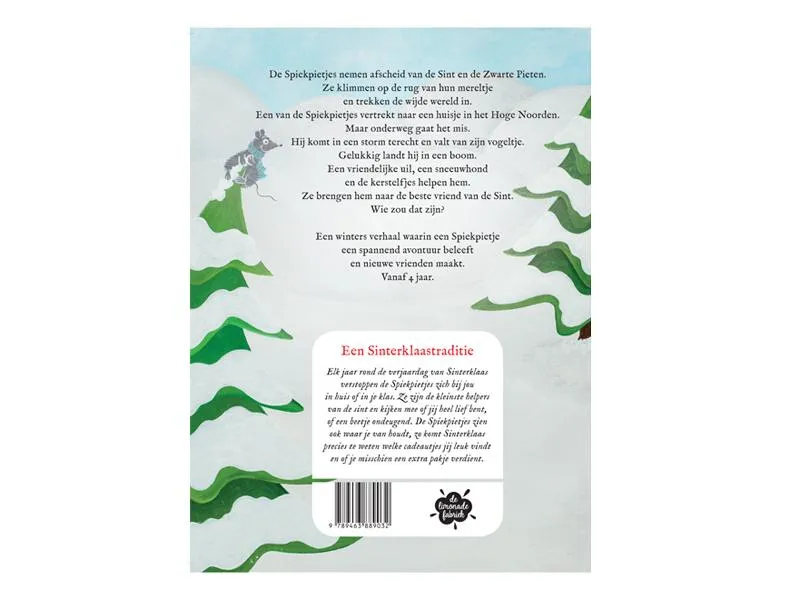 De Spiekpietjes nemen afscheid van de Sint en de Pieten. Ze klimmen op de rug van hun mereltje en trekken de wijde wereld in. Maar soms gaat het mis! Een Spiekpietje komt in een storm terecht en serieus in de problemen! Gelukkig zijn er een heleboel lieverdjes die het Spiekpietje een handje helpen!<br><br>Hardcover prentenboek over Sinterklaas en de Spiekpietjes! 32 kleurrijke pagina’s heerlijke winterse vertellingen.