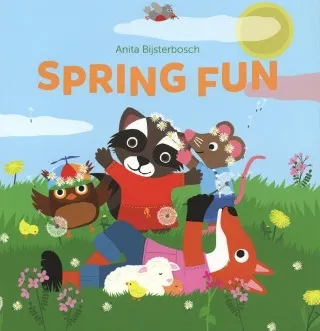 Vos, Muis, Wasbeer en Uil spelen in de lentezon. Samen beleven ze allerlei avonturen, waarbij de lezer ze mag helpen. Prentenbeoek met kleurenillustraties. Vanaf ca. 3 jaar.