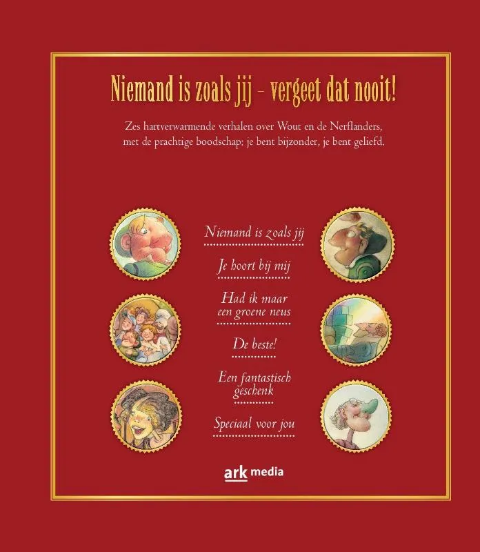 Sterren en stippen. Alle verhalen over Wout en de Nerflanders. Al ruim 10 jaar staat Niemand is zoals jij in de top 10-lijsten van de christelijke boekhandel. De aansprekende parabel over zelfbeeld en eigenwaarde heeft al vele harten geraakt. Ook de andere prentenboeken van Max Lucado waren succesvol, maar helaas zijn ze niet allemaal meer los verkrijgbaar in de boekhandel. Juist daarom is er nu deze prachtige bundel met alle verhalen over Wout en de Nerflanders. Zorgvuldig uitgevoerd met stofomslag en goudfolie en inclusief de sfeervolle illustraties uit de geliefde prentenboeken, waardoor het een geschenk wordt voor iedereen.