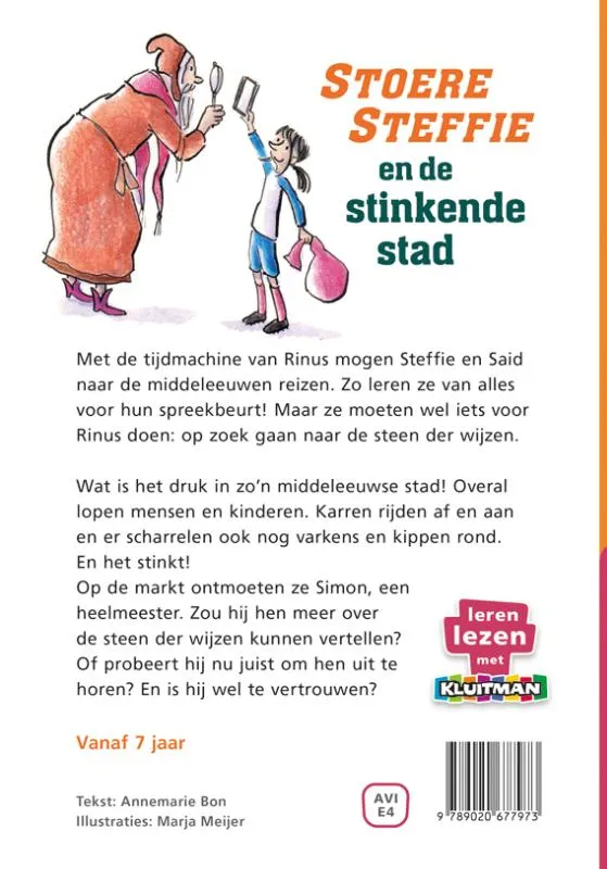 Steffie en Said moeten een spreekbeurt houden over de middeleeuwen. Ze mogen er van uitvinder Rinus met de tijdmachine naartoe reizen. Ze moeten wel beloven om voor hem het geheim van de steen der wijzen te ontfutselen. Maar een middeleeuwse stad was lang niet zo schoon als een stad van nu. Er ligt overal poep op straat en er scharrelen gewoon varkens en kippen rond! Steffie en Said kijken hun ogen uit. Maar dan wordt Said gevangengenomen. Lukt het Steffie om hem te bevrijden?