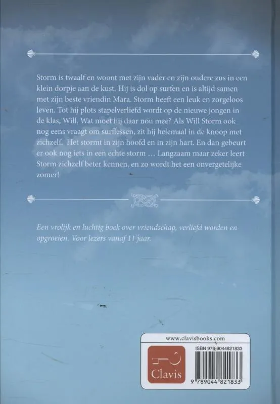 Storm is twaalf en woont met zijn vader en zijn zus in een klein plaatsje aan de kust. Hij surft graag en is altijd samen met zijn beste vriendin Mara. Hij heeft een leuk leven en maakt zich nergens zorgen over. Tot hij tot over zijn oren verliefd wordt op de nieuwe jongen in zijn klas. Ineens is alles anders en heeft Storm een storm in zijn lichaam en een storm in zijn hoofd. En dan gebeurt er ook nog iets in een echte storm …