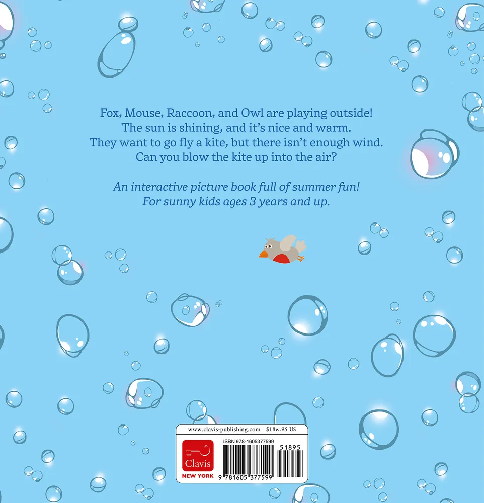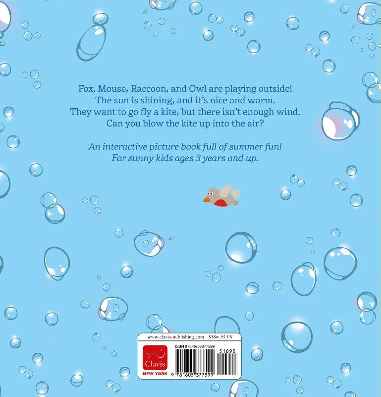 Fox, Mouse, Raccoon, and Owl are playing outside! The sun is shining, and it’s nice and warm. They want to go fly a kite, but there isn’t enough wind. Can you blow the kite up into the air?