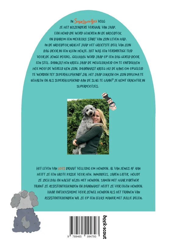 Superpootjes neemt je mee in het verhaal van Jaap, een kleine poedelpuppy. Jaap werd geboren in de broodfok, maar groeit uiteindelijk op tot een superhulphond. Jaap neemt je mee in zijn avontuur.