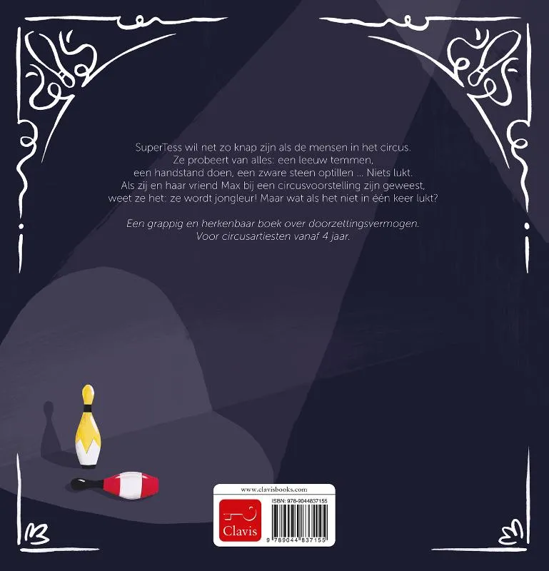 SuperTess wil net zo knap zijn als de mensen in het circus. Ze probeert van alles: een leeuw temmen, een handstand doen, een zware steen optillen … Niets lukt. Als zij en haar vriend Max bij een circusvoorstelling zijn geweest, weet ze het: ze wordt jongleur! Maar wat als het niet in één keer lukt?