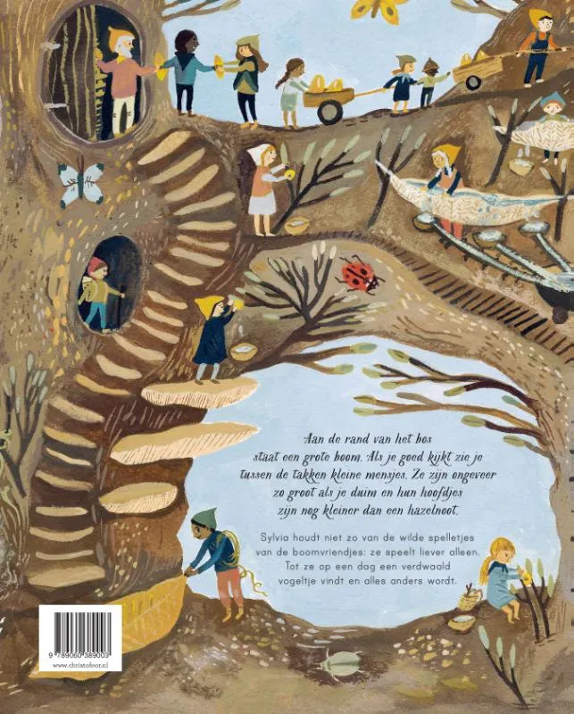 Aan de rand van het bos staat een grote boom. Als je goed kijkt, zie je tussen de takken kleine mensjes. Ze zijn ongeveer zo groot als je duim en hun hoofdjes zijn nog kleiner dan een hazelnoot. Sylvia houdt niet zo van de wilde spelletjes van de boomvriendjes, ze speelt liever alleen. Tot ze op een dag een verdwaald vogeltje vindt en alles verandert.