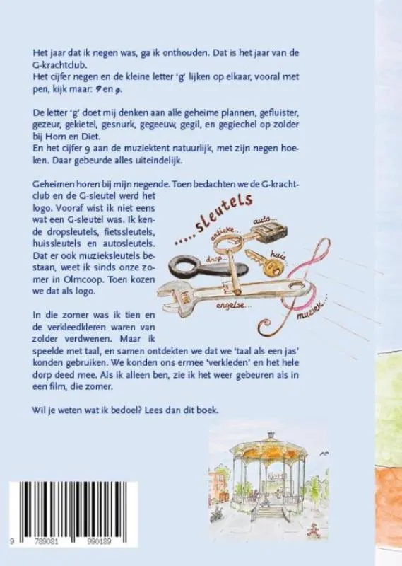 Carlijn houdt van knutselen en zit vaak met haar ouders alleen. Tot ze ’s zomers ontdekt dat ze ook met taal kan knutselen. Voor ze het weet heeft ze de G-krachtclub opgericht met drie andere kinderen. Ze beleven nog veel meer dan het achtbaanavontuur waar het allemaal mee begon. Als ze ’taal als een jas’ aandoen, neemt opeens het hele dorp hen bloedserieus, en waar dat op uitloopt …