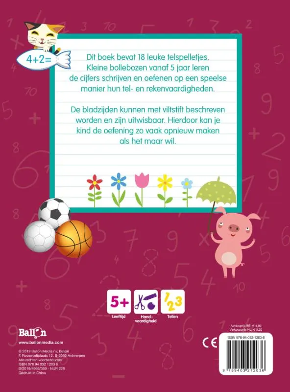 Dit boek bevat 18 leuke telspelletjes. Kleine bollebozen vanaf 5 jaar leren de cijfers schrijven en oefenen op een speelse manier hun tel- en rekenvaardigheden.