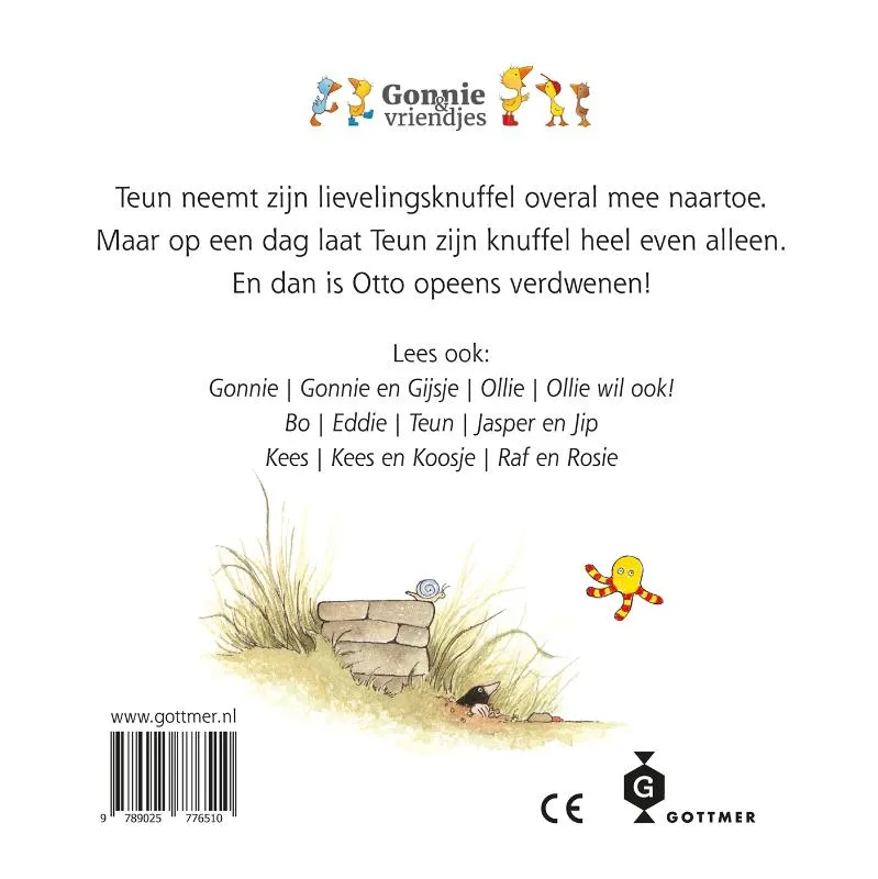 Dit kartonboekje van Oliver Dunrea gaat over van Gonnies vriendjes, Teun. Teun neemt zijn lievelingsknuffel Otto overal mee naartoe. Maar op een dag laat Teun zijn knuffel heel even alleen. En dan is Otto opeens verdwenen!