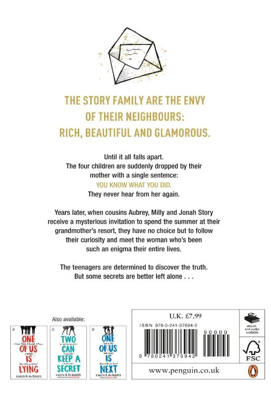 Tieners Milly, Aubrey en Jonah zijn familie, maar kennen elkaar amper. Ze zijn dan ook erg verrast als ze door hun rijke oma worden uitgenodigd. Als ze op het eiland aankomen, blijkt al gauw dat oma iets met ze van plan is. En ze ontdekken dat hun familiegeschiedenis behoorlijk duister is. Vanaf ca. 15 jaar.