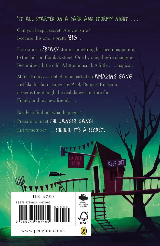 Franky can’t wait to move to his new town – although he wishes he didn’t have to leave his best friend Dani behind. But everything changes after the storm, when strange green lightning and powerful thunder crash down on the town. From that night on, the kids who live on Franky’s street start to change. One by one, they become a little odd. A little unusual. A little… magical. Franky’s always wanted to be part of an amazing gang – just like his hero, super-spy Zack Danger! And soon, he realises that there’s real danger in store for himself and his new friends. And so the Danger Gang is born..
