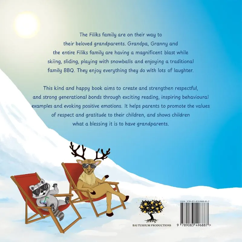 The Filiks family are on their way to their beloved grandparents. Grandpa, Granny and the entire Filiks family are having a magnificent blast while skiing, sliding, playing with snowballs and enjoying a traditional family BBQ. They enjoy everything they do with lots of laughter. This kind and happy book aims to create and strengthen respectful, and strong generational bonds through exciting reading, inspiring behavioural examples and evoking positive emotions.It helps parents to promote the values of respect and gratitude to their children, and shows children what a blessing it is to have grandparents.