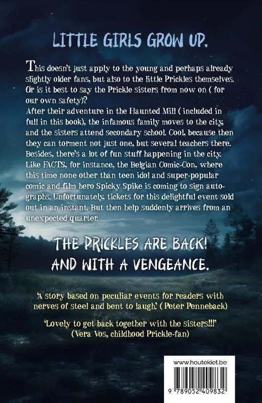 The Prickle Sisters are back! Fans of all ages can for the first time in English, read the adventure of the Haunted Mill as well as a brand new story that takes place at FACTS, the Belgian Comic Con.