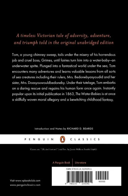 The Water-Babies, A Fairy Tale for a Land Baby is a children’s novel by the Reverend Charles Kingsley. Written in 1862-1863 as a serial for Macmillan’s Magazine, it was first published in its entirety in 1863. The book was extremely popular during its day, and was a mainstay of children’s literature through the 1920s.