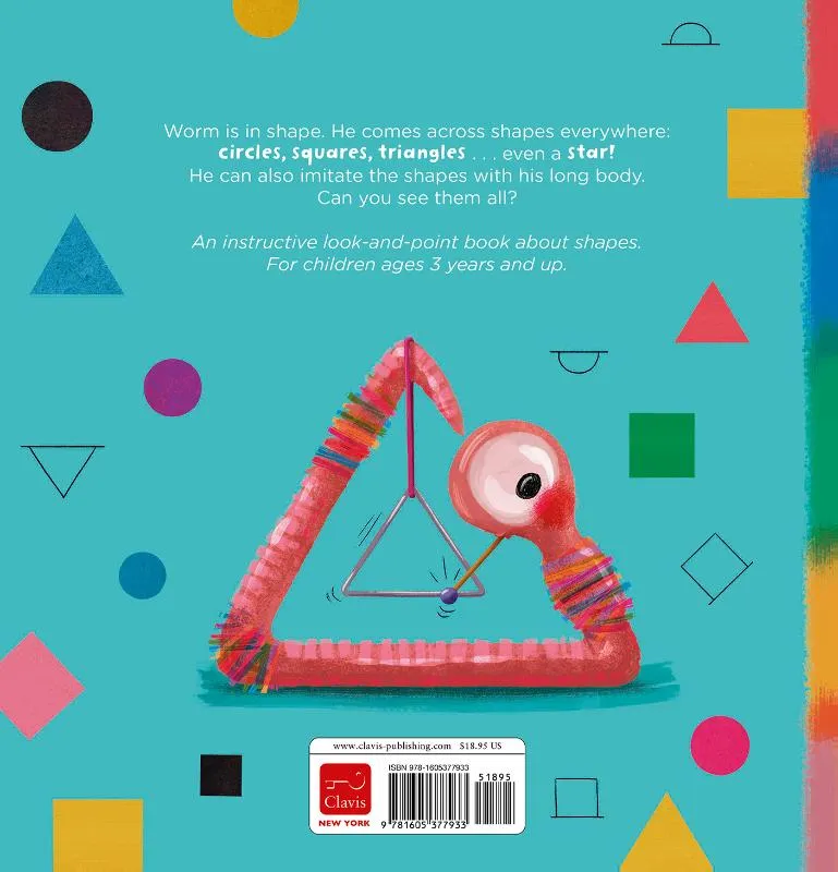 Worm leert de kleuren kennen tijdens het winkelen voor zijn feestje. Speels educatief aanwijsprentenboek met vrolijke kleurenillustraties. Vanaf ca. 3 jaar.