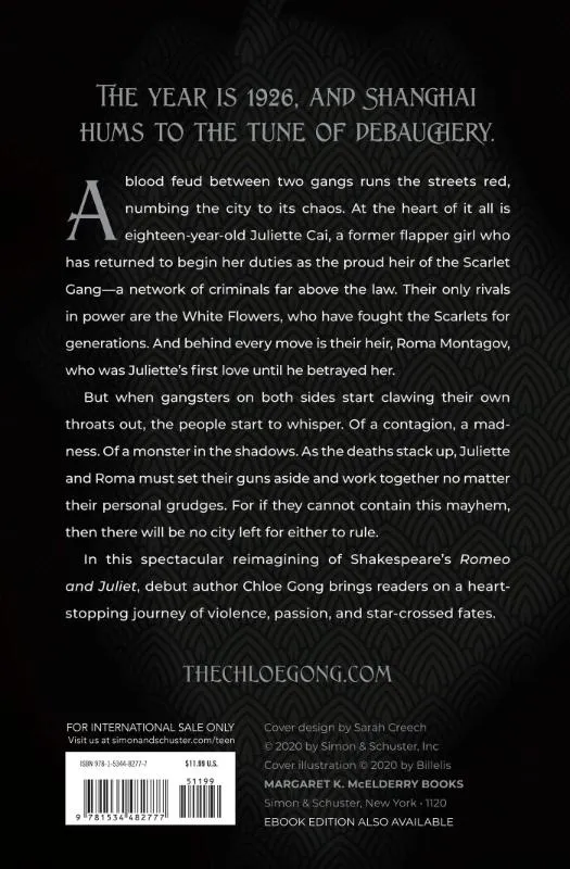 The year is 1926, and in Shanghai a blood feud between two gangs runs the streets red. But when both sides begin clawing their own throats out, people start to whisper. Of a contagion, a madness. As the deaths stack up, Juliette and Roma must set their grudges aside: if they can’t stop the chaos, then there will be no city left for either to rule.