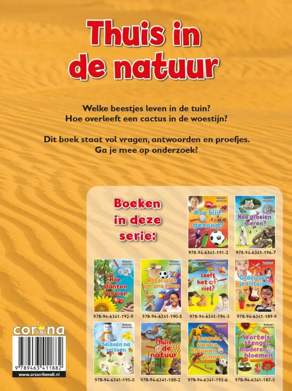 Welke beestjes leven in de tuin? Hoe overleeft een cactus in de woestijn? Dit boek staat vol vragen, antwoorden en proefjes. Ga je mee op onderzoek?