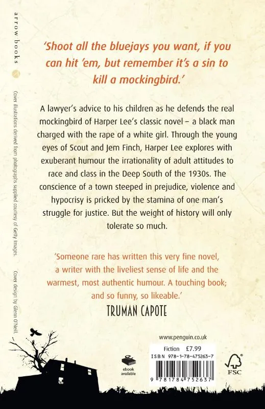 ‘ONE OF THE GREATEST AMERICAN NOVELS EVER WRITTEN”Shoot all the bluejays you want, if you can hit ‘em, but remember it’s a sin to kill a mockingbird.’A lawyer’s advice to his children as he defends the real mockingbird of Harper Lee’s classic novel – a black man falsely charged with the rape of a white girl.