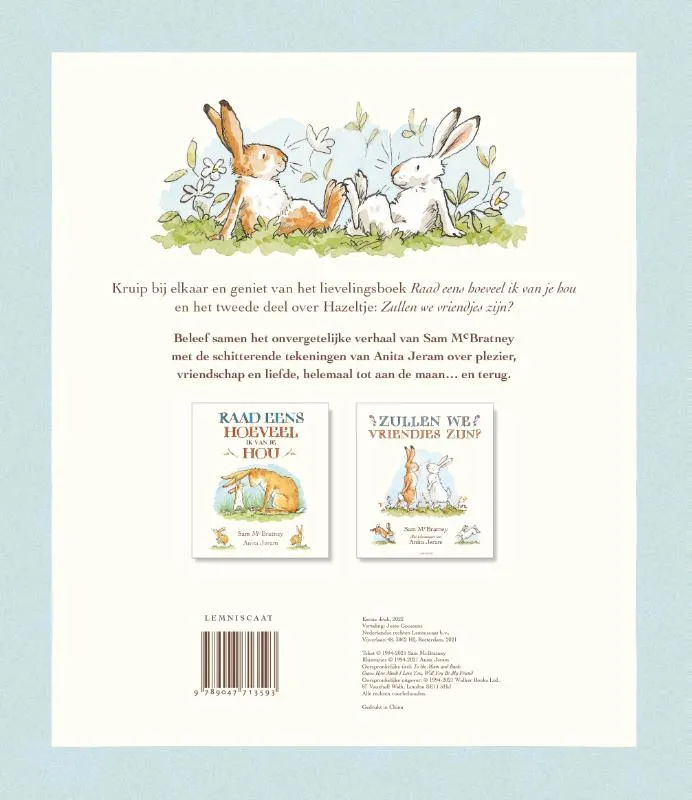 Wat moeten we hier nog over zeggen? De twee mooiste klassieke prentenboeken om te geven aan degene van wie je houdt: Raad eens hoeveel ik van je hou en Zullen we vriendjes zijn? in een prachtige cassette.