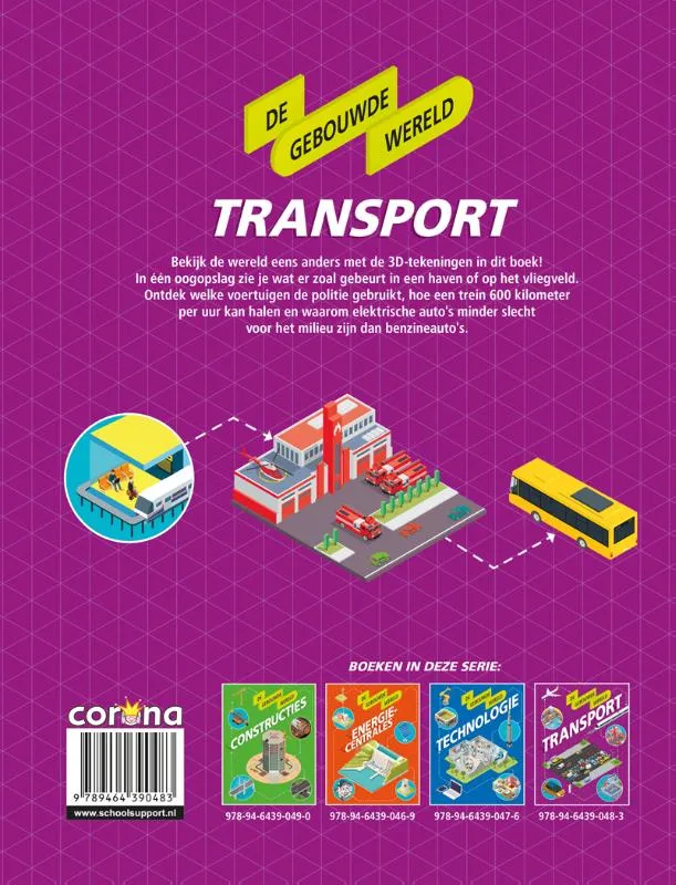 Bekijk de wereld eens anders met de 3D-tekeningen in dit boek! In één oogopslag zie je wat er zoal gebeurt in een haven of op het vliegveld. Ontdek welke voertuigen de politie gebruikt, hoe een trein 600 kilometer per uur kan halen en waarom elektrische auto’s minder slecht voor het milieu zijn dan benzineauto’s.