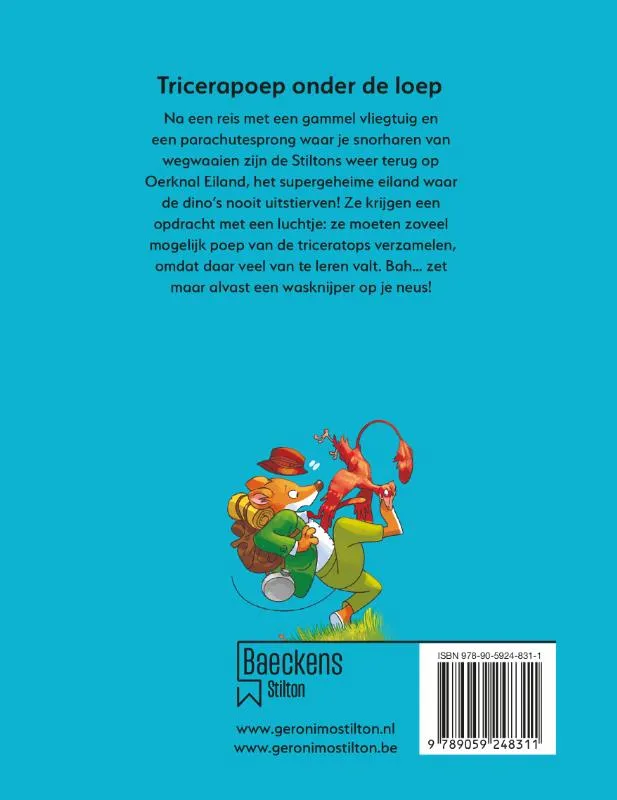 Na een reis met een gammel vliegtuig en een parachutesprong waar je snorharen van wegwaaien zijn de Stiltons weer terug op Oerknal Eiland, het supergeheime eiland waar de dino’s nooit uitstierven! Ze krijgen een opdracht met een luchtje: ze moeten zoveel mogelijk poep van de triceratops verzamelen, omdat daar veel van te leren valt. Bah… zet maar alvast een wasknijper op je neus!