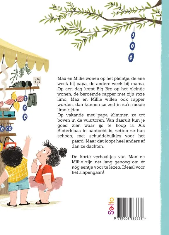 Max en Millie wonen op het pleintje, de ene week bij papa, de andere week bij mama. Op een dag komt Big Bro op het pleintje wonen, de beroemde rapper met zijn roze limo. Max en Millie willen ook rapper worden, dan kunnen ze zelf in zo’n mooie limo rijden.Op vakantie met papa klimmen ze tot boven in de vuurtoren. Van daaruit kun je goed zien waar ijs te koop is. Als Sinterklaas in aantocht is, zetten ze hun schoen, met schuddebuikjes voor het paard. Maar dat loopt heel anders af dan ze dachten.