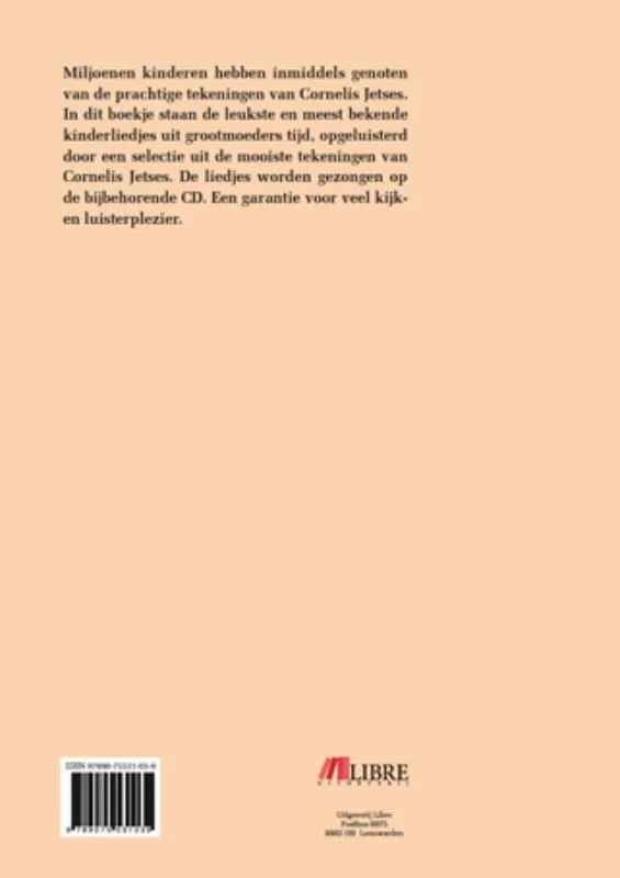 Miljoenen kinderen hebben inmiddels genoten van de prachtige tekeningen van Cornelis Jetses. In dit boekje staan de leukste en meest bekende kinderliedjes uit grootmoeders tijd, opgeluisterd met een selectie uit de mooiste tekeningen van Cornelis Jetses. De liedjes worden gezongen op de bijbehorende CD. Een garantie voor veel kijk- en luisterplezier.