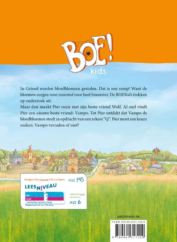 In het dorp Grissel worden bloedbloemen gestolen. De Boe!kids gaan op onderzoek uit. Waarom willen de vampierjongens de bloedbloemen zo graag hebben? AVI-M5. Vanaf ca. 8 jaar.