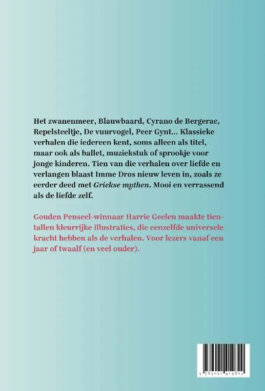 Als geen ander kan Imme Dros klassieke verhalen opnieuw tot leven brengen voor een groot publiek. Eerder deed ze dat op weergaloze wijze met de Griekse mythen, en nu koos ze verschillende verhalen die behoren tot de Westerse cultuurgeschiedenis en die iedereen op z’n minst kent van naam: Het zwanenmeer, Cyrano de Bergerac, Blauwbaard, De vuurvogel, Peer Gynt, Psyche en Eros…