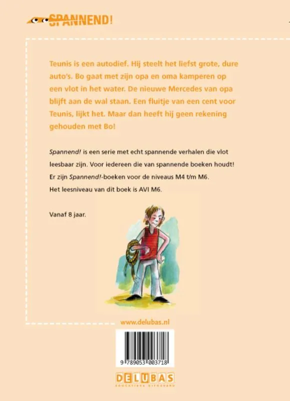 Teunis is een autodief. Hij steelt het liefst grote, dure auto’s. Bo gaat met zijn opa en oma kamperen op een vlot in het water. De nieuwe Mercedes van opa blijft aan de wal staan. Een fluitje van een cent voor Teunis, lijkt het. Maar dan heeft hij geen rekening gehouden met Bo!