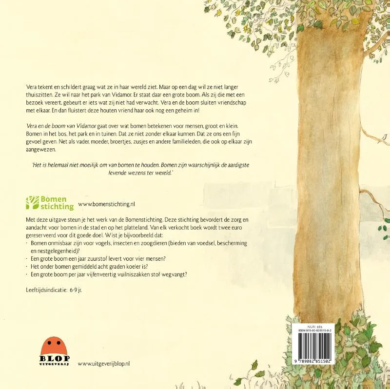 Vera tekent en schildert graag wat ze buiten ziet. Maar op een dag wil ze niet langer thuiszitten. Ze wil naar het park van Vidamor. Er staat daar een grote boom. Als zij die met een bezoek vereert, gebeurt er iets wat zij niet had verwacht. Vera en de boom sluiten vriendschap met elkaar. En dan fluistert deze houten vriend haar ook nog een geheim in!