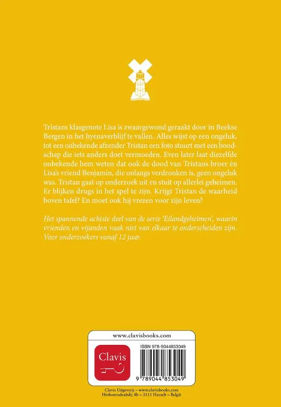 Tristans klasgenote Lisa is zwaargewond geraakt door in Beekse Bergen in het hyenaverblijf te vallen. Alles wijst op een ongeluk, tot een onbekende afzender Tristan een foto stuurt met een boodschap die iets anders doet vermoeden. Even later laat diezelfde onbekende hem weten dat ook de dood van Tristans broer én Lisa’s vriend Benjamin, die onlangs verdronken is, geen ongeluk was. Tristan gaat op onderzoek uit en stuit op allerlei geheimen. Er blijken drugs in het spel te zijn. Krijgt Tristan de waarheid boven tafel? En moet ook hij vrezen voor zijn leven?