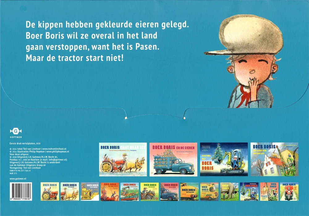 ‘Boer Boris en de eieren’, het zevende deel in de razend populaire en bekroonde prentenboekenserie van Ted van Lieshout en Philip Hopman, is ook beschikbaar in de vorm van grote vertelplaten. Perfect om voor te lezen op kinderdagverblijven, peuterspeelzalen en op basisscholen.