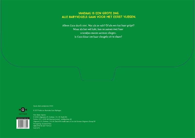 Voor de kleine Coco is het tijd om haar vleugeltjes uit te slaan. Alle andere babyvogeltjes zijn al uitgevlogen, maar voor Coco is dat zo makkelijk nog niet. Wat nou als ze heel hard valt? Tegelijkertijd: als ze de sprong waagt, zou ze ook nieuwe vriendjes kunnen maken. Gelukkig heeft Coco een wijze moeder die haar precies het zetje geeft dat ze nodig heeft.