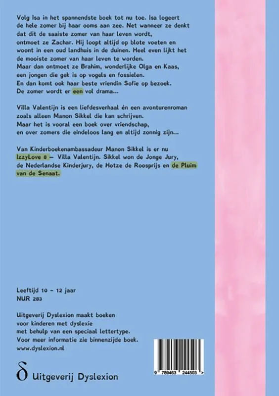 Van Kinderboekenambassadeur Manon Sikkel is er nu IzzyLove 8 – Villa Valentijn. Sikkel won de Jonge Jury, de Nederlandse Kinderjury, de Hotze de Roosprijs en de Pluim van de Senaat.