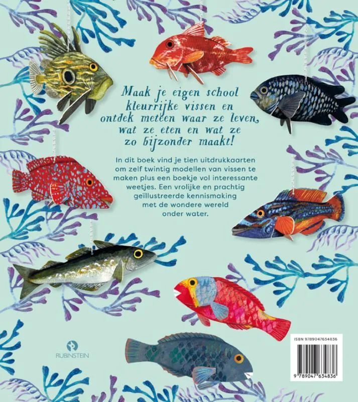 Maak je eigen school kleurrijke vissen en ontdek meteen waar ze leven, wat ze eten en wat ze ze bijzonder maakt! In dit boek vind je tien uitdrukkaarten om zelf twintig modellen van vissen te maken plus een boekje vol interessante weetjes. Een vrolijke en prachtig geïllustreerde kennismaking met de wondere wereld onder water.