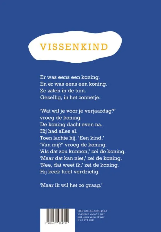 Er waren eens een koning en een koning. Ze wilden graag een kind, maar dat ging natuurlijk niet. Toen de koning jarig was, had de koning een bijzonder cadeau: een klein visje. Het visje werd hun Vissenkind. Vissenkind groeide en op een dag wou hij de wereld ontdekken en de liefde zoeken…