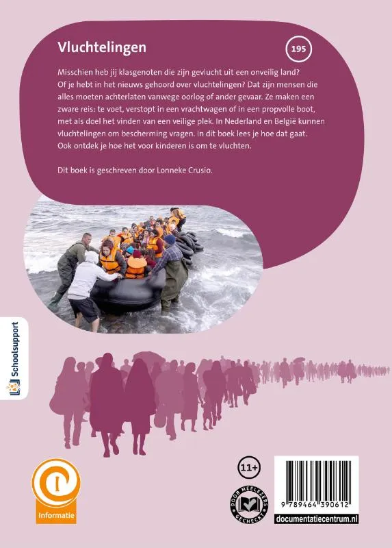 Misschien heb jij klasgenoten die zijn gevlucht uit een onveilig land? Of je hebt in het nieuws gehoord over vluchtelingen? Dat zijn mensen die alles moeten achterlaten vanwege oorlog of ander gevaar. Ze maken een zware reis: te voet, verstopt in een vrachtwagen of in een propvolle boot, met als doel het vinden van een veilige plek. In Nederland en België kunnen vluchtelingen om bescherming vragen. In dit boek lees je hoe dat gaat. Ook ontdek je hoe het voor kinderen is om te vluchten.