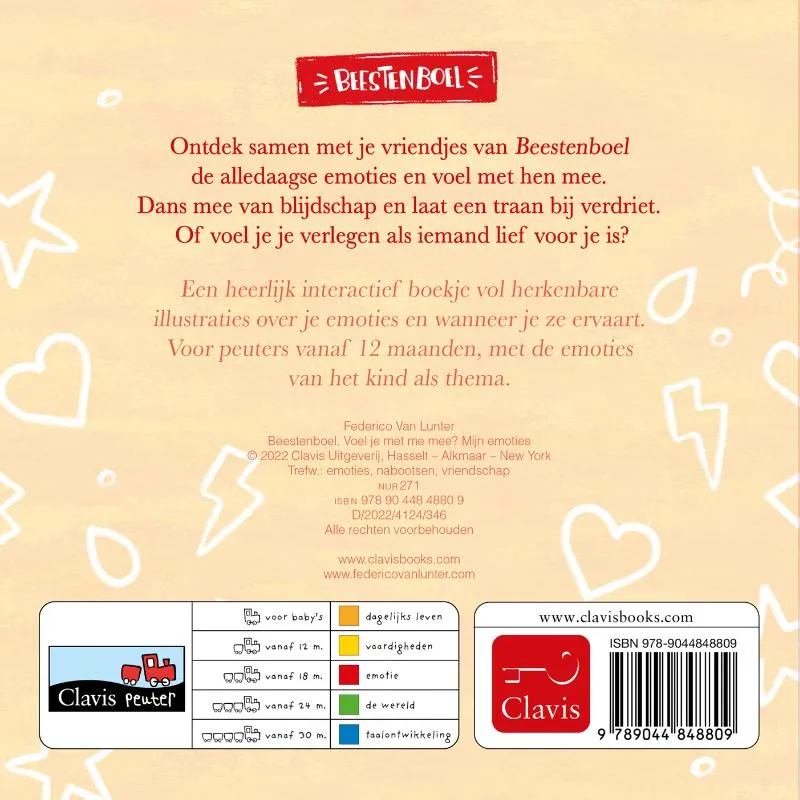 Prentenboek waarmee peuters kennis kunnen maken met emoties. Vanaf ca. 2 jaar.