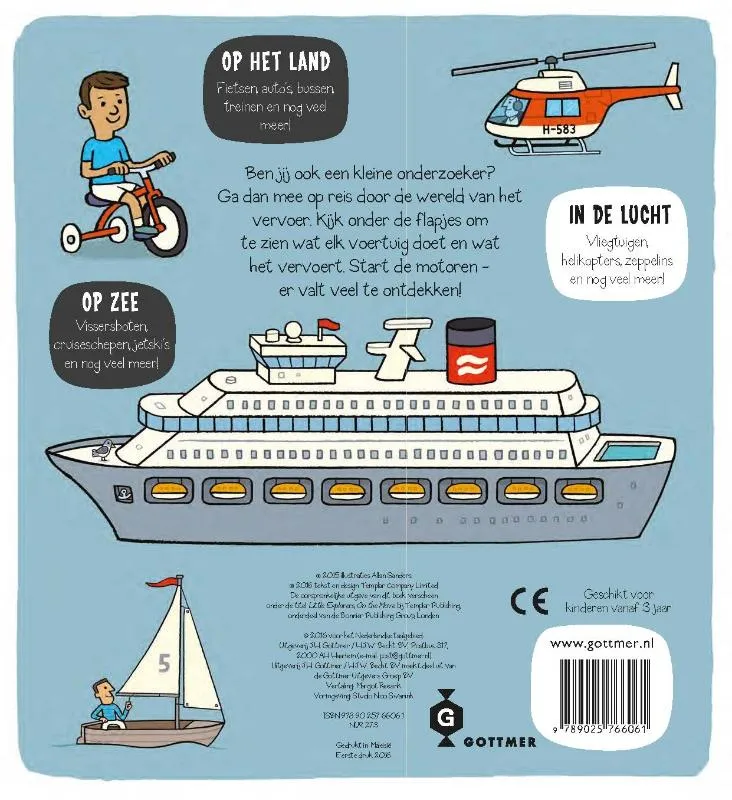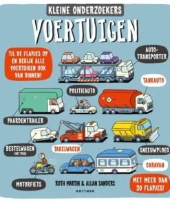 ‘Kleine onderzoekers – Voertuigen’ biedt een speelse introductie op de transportwereld en de verschillende manieren waarop mensen reizen. Kleine onderzoekers, maak je borst maar nat, want er valt een hoop te ontdekken!