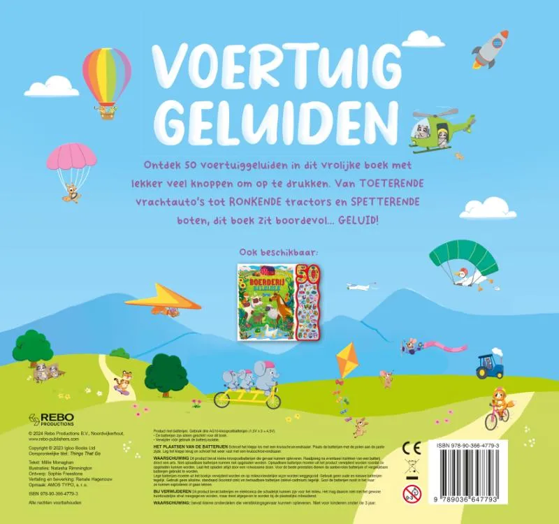 Ontdek 50 voertuiggeluiden in dit vrolijke boek met lekker veel knoppen om op te drukken. Van toeterende vrachtauto’s tot ronkende tractors en spetterende boten, dit boek zit boordevol… geluid!