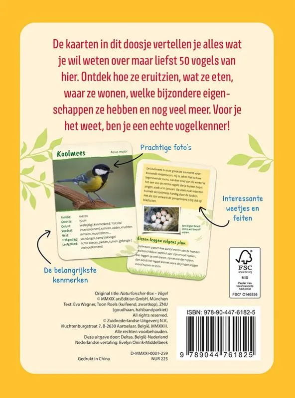 In deze leuke doos van Deltas zitten maar liefst 50 kaarten met de bekendste vogelsoorten in België en Nederland. Op elke kaart staat een duidelijke foto en heel wat informatie zoals de grootte van de vogel, het geluid dat hij maakt, waar hij voorkomt, waar hij zijn nest maakt en nog veel meer!