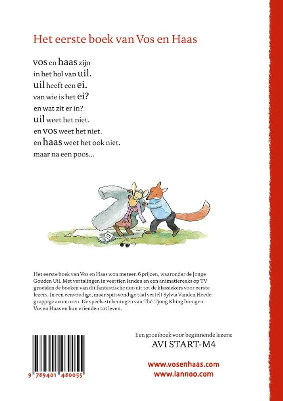 Het eerste boek van Vos en Haas won meteen 6 prijzen, waaronder de Jonge Gouden Uil. Met vertalingen in veertien landen en een animatiereeks op TV groeiden de boeken van dit fantastische duo uit tot de klassiekers voor eerste lezers.