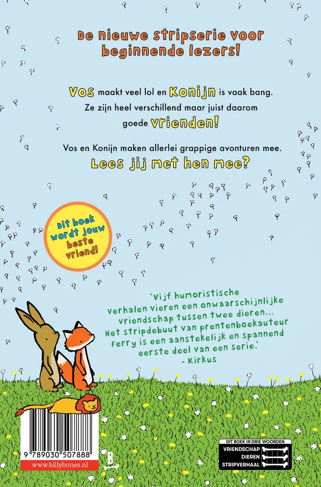 Vos maakt veel lol en Konijn is vaak bang. Ze zijn heel verschillend maar juist daarom goede vrienden! Vos en Konijn maken allerlei grappige avonturen mee. Lees jij met hen mee?