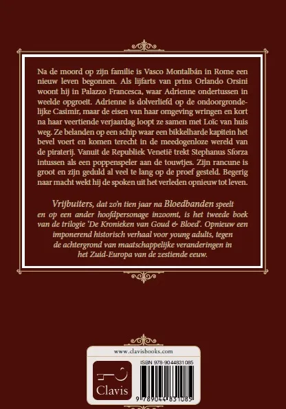 Vrijbuiters, dat zo’n tien jaar na Bloedbanden speelt en op een ander hoofdpersonage inzoomt, is het tweede boek van de trilogie ‘De Kronieken van Goud & Bloed’. Opnieuw een