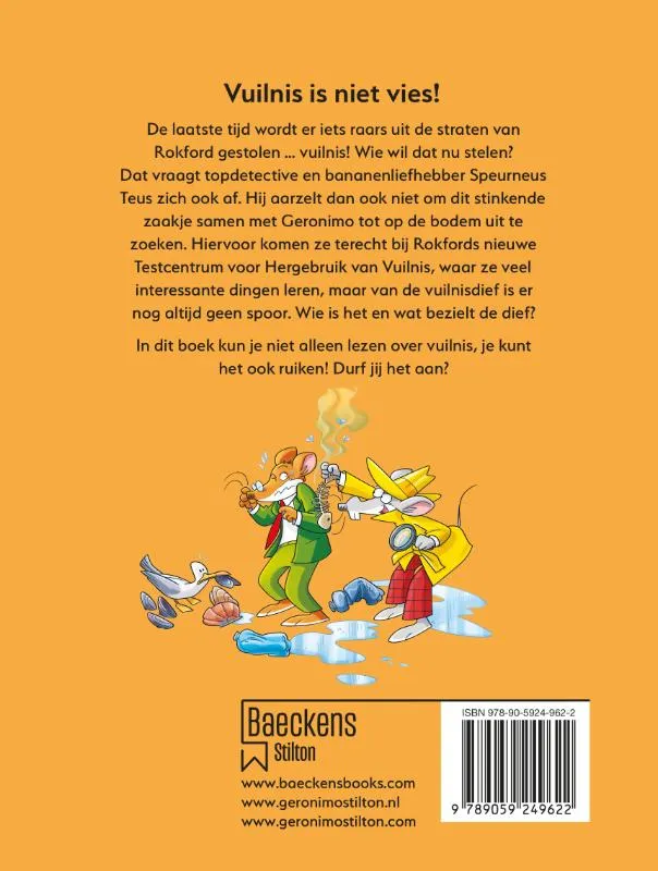 Een beroemde speurmuis vraagt Geronimo om hem te helpen bij een wel heel vreemd onderzoek. Het vuilnis van Rokford wordt namelijk de hele tijd gestolen en niemand snapt er een muizensnars van. Wie wil er nou vuilnis stelen?! Samen met het hoofd van Rokfords centrum voor hergebruik De Knagerkringloop, gaan ze op zoek naar de vreemde vuilnis-verduisteraar. Alle sporen leiden naar een uitvinder die ook bij De Knagerkringloop werkt. Maar wat moet hij dan met al dat afval?