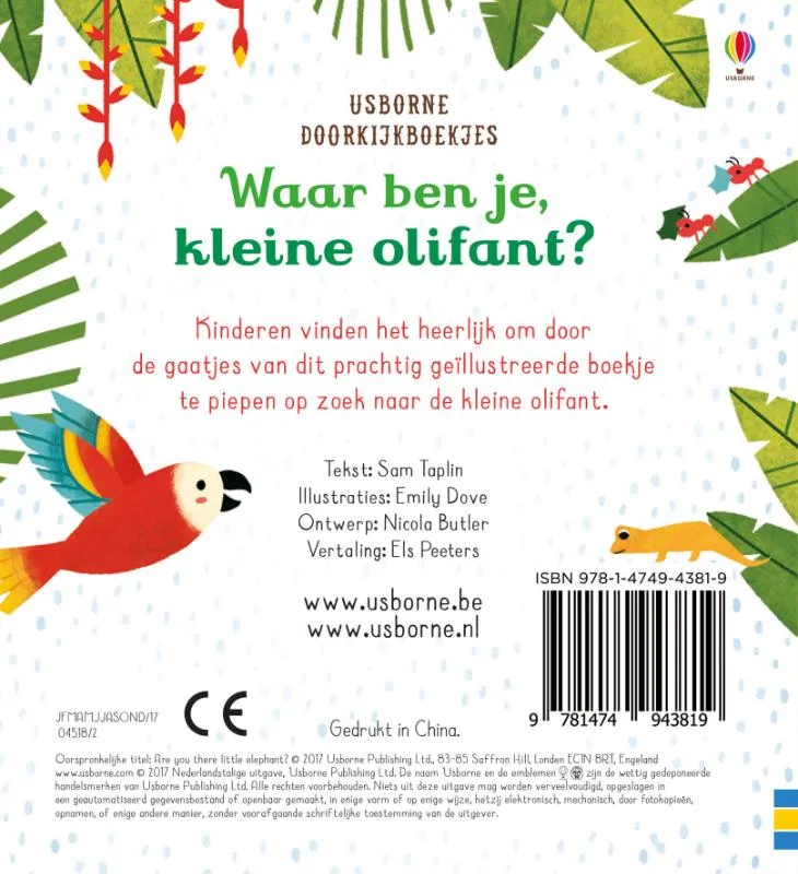 Kinderen vinden het heerlijk om door de gaatjes van dit prachtig geïllustreerde boekje te piepen op zoek naar de kleine olifant.