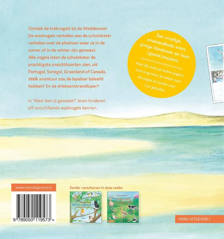In ‘Waar ben jij geweest?’ leren kinderen elf verschillende wadvogels kennen. Met een QR-code op iedere pagina: kom nog meer te weten over de vogels en luister naar hun vogelgeluiden.